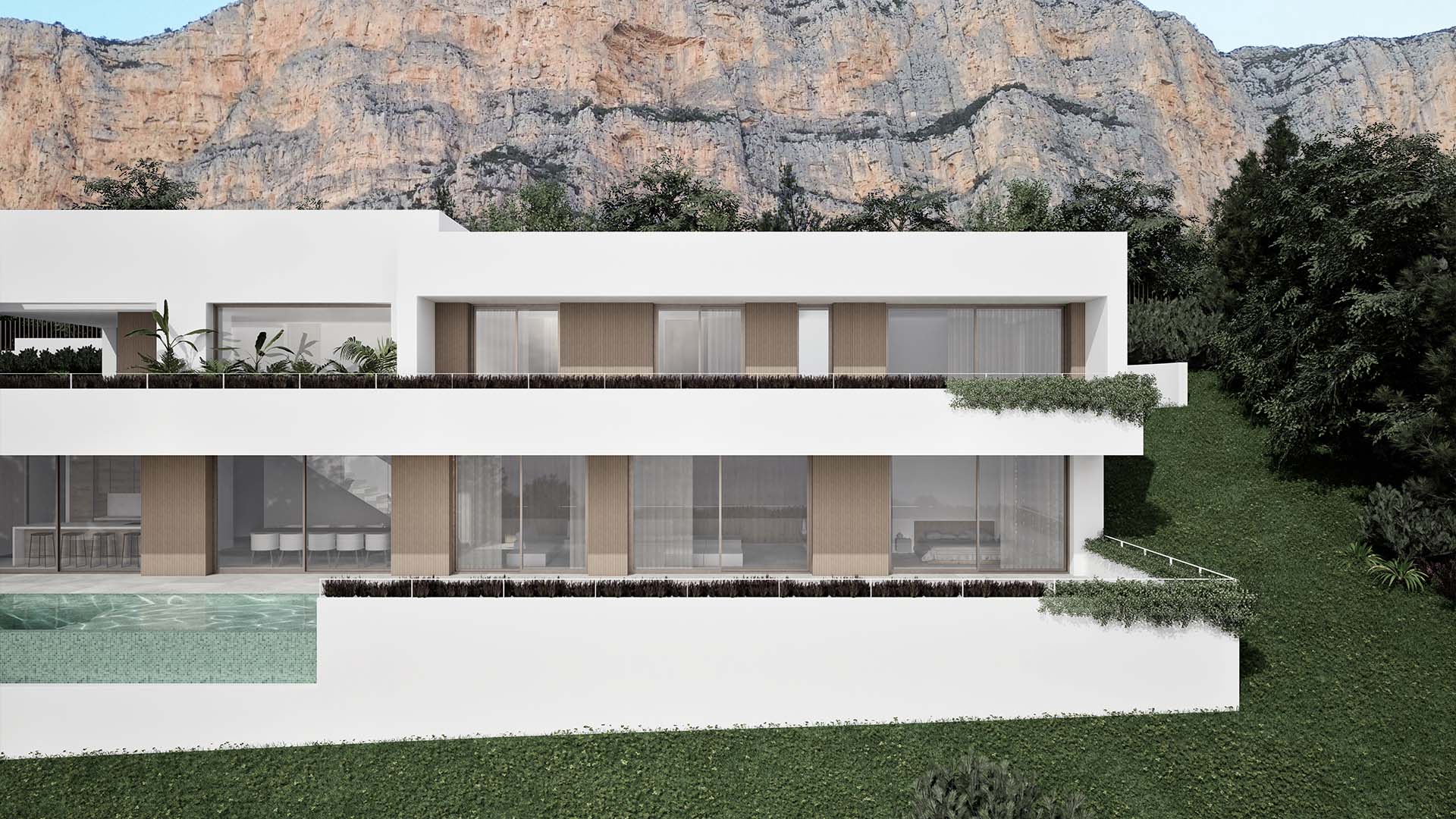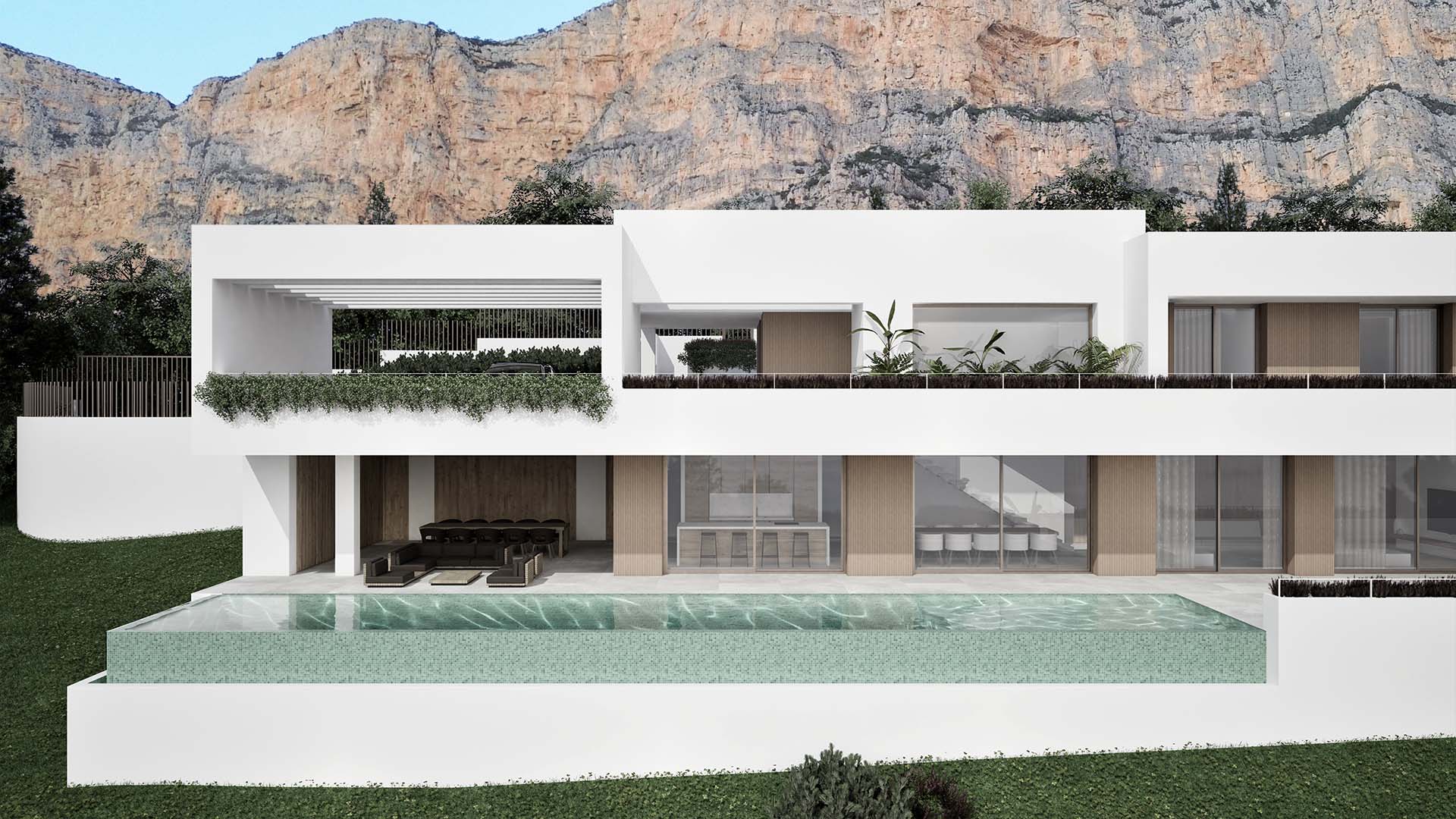 Villa Centauro II, edificación de nueva construcción, se ubica en las faldas del Montgó, junto al Parque Natural del Montgó y el Club de Golf La Sella. La vivienda de diseño contemporáneo y orientada al sur dispone de vistas abiertas y panorámicas del valle.